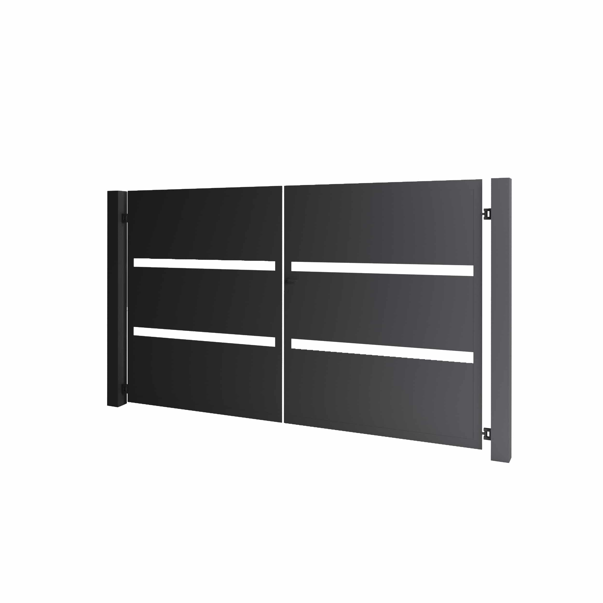 De Melbourne dubbele draaipoort combineert moderniteit en stevigheid met zijn strakke, gesloten design. De volledig dichte poort zorgt voor maximale privacy en een uniforme uitstraling. De stalen beplating wordt volledig ín het kader gelast, wat zorgt voor een strakke, vlakke afwerking en extra stabiliteit. Kies uit diverse kleuren en afmetingen om jouw poort helemaal af te stemmen op je woning of bedrijf.