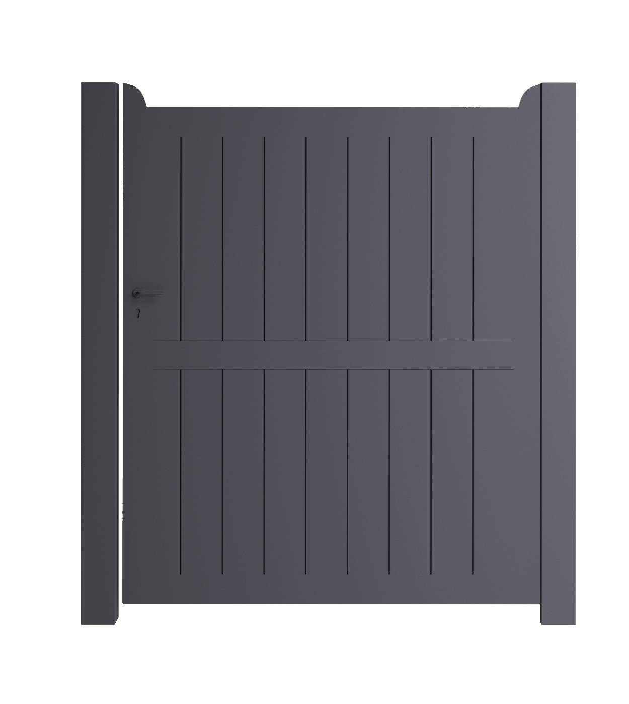 De Perth-BL enkele draaipoort brengt een stijlvolle, landelijke look naar je oprit. De combinatie van verticale planchetten en de horizontale versteviging zorgt voor een klassiek accent, zonder doorkijk voor maximale privacy. Beschikbaar in diverse kleuren en afmetingen, perfect voor wie houdt van tijdloze elegantie.